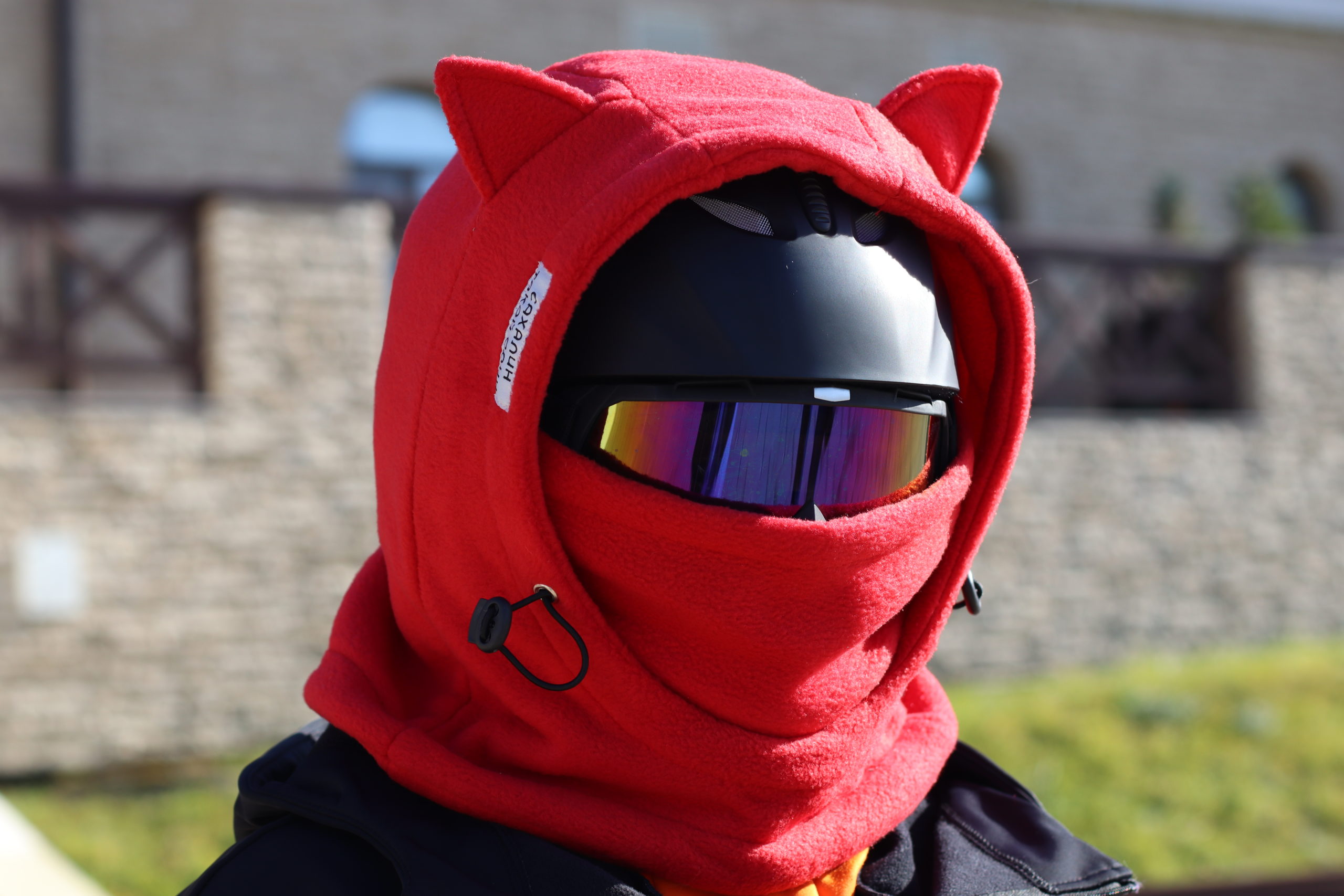 Балаклава с ушкама на горнолыжный шлем, цвет красный, Флис 260 гр, Полиэстер-100%