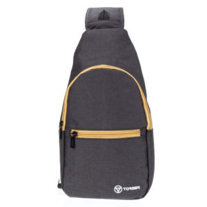 Рюкзак TORBER с одним плечевым ремнем, чёрный/бежевый, полиэстер 300D, 33 х 17 х 6 см